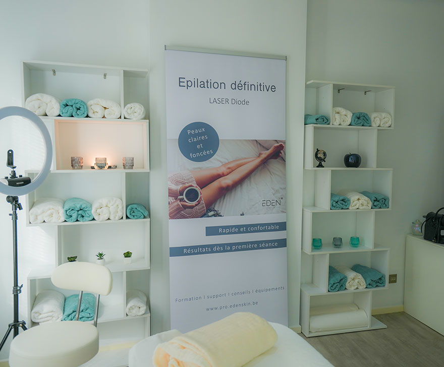 Notre technologie de pointe pour l'épilation définitive au laser est le laser Eden Skin, qui est connu pour être l'un des lasers les plus performants du marché.